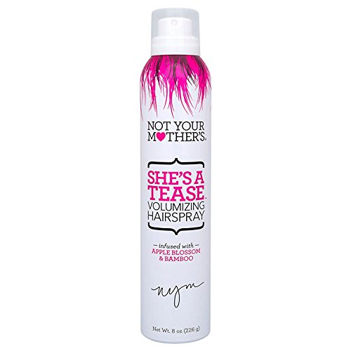 The She'due south A Tease Volumizing Hairspray by Not Your Mother'south is infused with natural apple blossom and bamboo. This salon-course formula fights humidity, hair frizz, limp pilus, and flyaways. Information technology makes your hair appear thicker, fuller, and healthier. It smells skillful, does non get out your pilus pasty, and tin can be brushed or styled again. This lightweight hair spray lasts all solar day and holds styled hair in place. It does not brand your pilus stiff or crunchy and does non go out a pic of rest.
